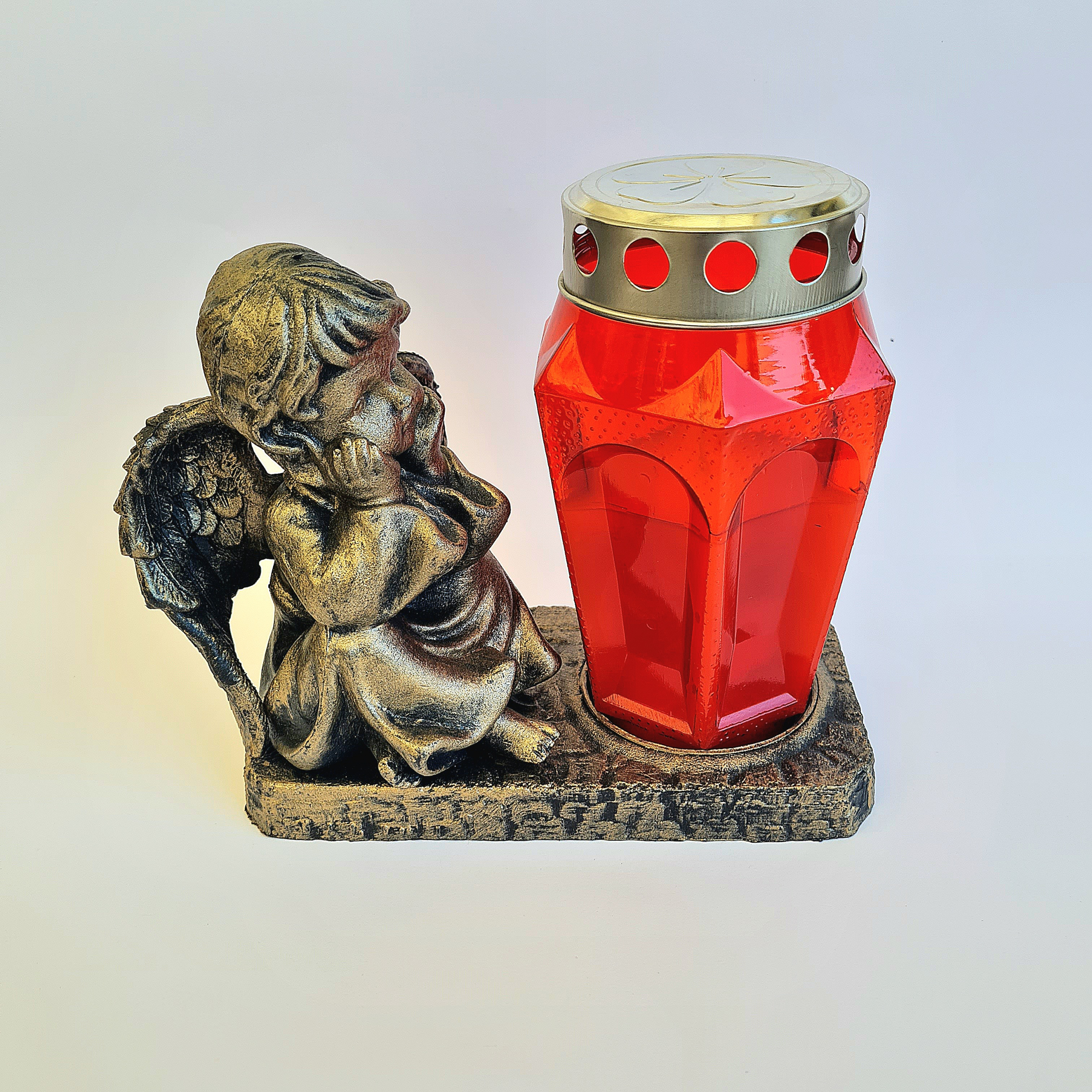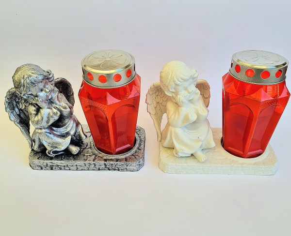 Plastičen kipec Angelčka s svečko.